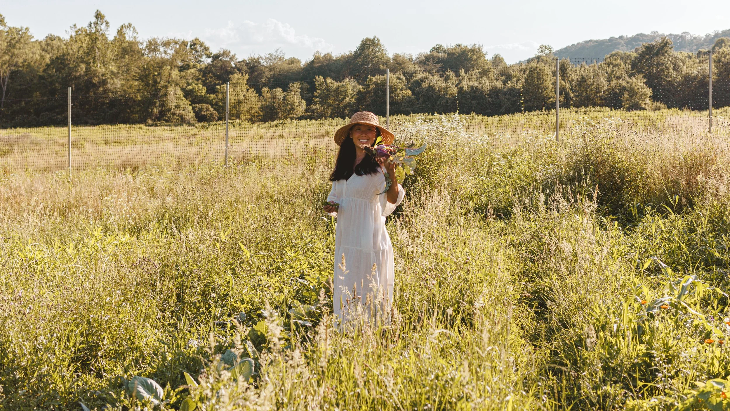 Mornings & evenings I usually throw on a dress and a hat, and with excitement I go check on the flowers & veggies.